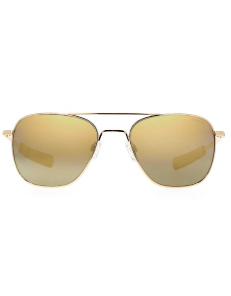 Las gafas de sol Randolph Aviator tamaño 58, con montura dorada y lentes polarizadas en efecto espejo oro, combinan artesanía excepcional con un diseño icónico y atemporal. Fabricadas en EE.UU., ofrecen una claridad visual superior, protección completa contra rayos UVA/UVB y reducción de reflejos, ideales para actividades al aire libre o pilotar bajo cualquier condición lumínica. Su elegante montura dorada aporta distinción, mientras que las lentes con efecto espejo oro polarizadas brindan estilo y máximo confort visual.